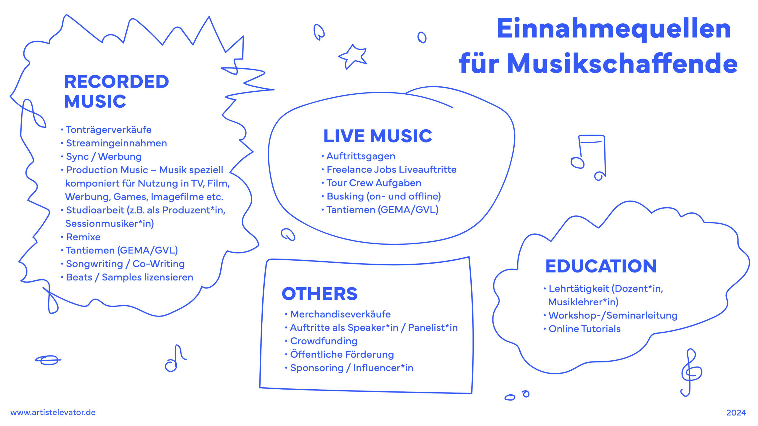 Übersicht von Einnahmequellen für Musikschaffende
